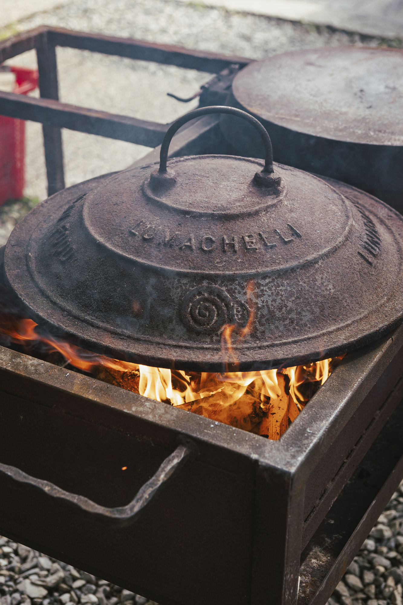 Crunchy live-cooked Testaroli 🥄 by Testarolando, paired with premium cold cuts and our signature EVO oil 🫒 + Parmigiano